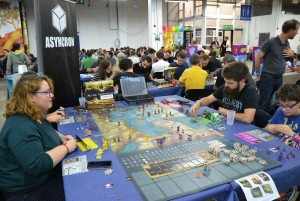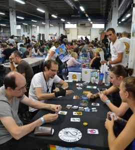 Vous noterez tout de suite que j’ai utilisé le mot « convention », et non pas « festival », comme la plupart des événements entourant le jeu de société en France. En effet, Octogones était à l’origine une convention sur le jeu et l’imaginaire, où l’on trouvait essentiellement du jeu de rôle et de la figurine. Puis au fil des ans et devant l’essor du jeu de société moderne, le festival s’est ouvert un peu plus, et le jeu de société tel que nous le pratiquons a s’y immiscer. Cette évolution a débuté avec la venue d’auteurs et de leurs prototypes pour en arriver maintenant à la présence de nombreux éditeurs majeurs faisant le déplacement (Blackrock, Iello, Gigamic, Ravensurger…) pour y présenter leurs nouveautés.