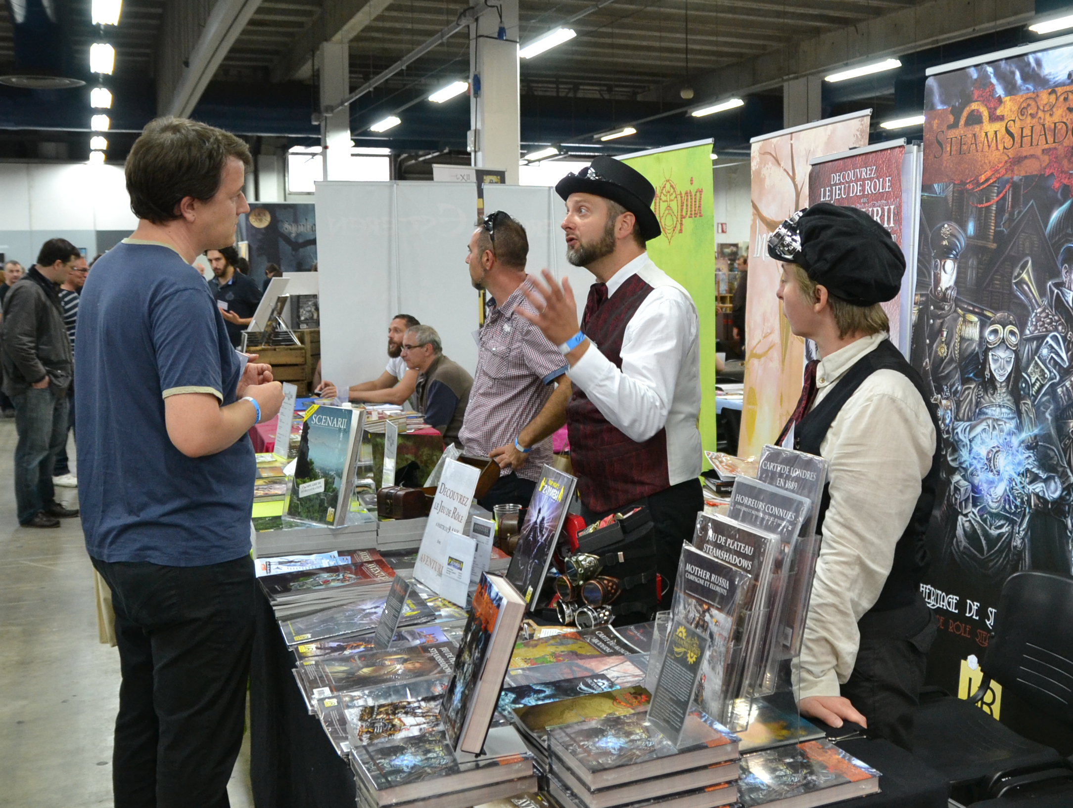 Octogône c’est du Jdr, de la Figurine et du Plateau il y a aussi une zone Famille, jeux de Carte, Fiction (SF/Fantasy) (avec auteurs illustrateurs et conférences), « GN » et « loup » (des partie de loup-garou non-stop).