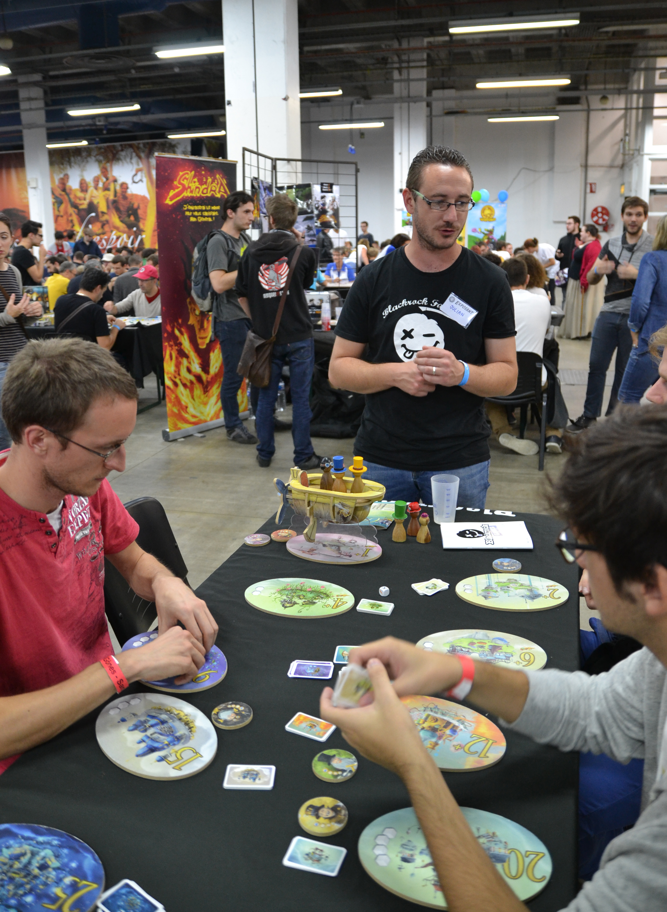 Vous noterez tout de suite que j’ai utilisé le mot « convention », et non pas « festival », comme la plupart des événements entourant le jeu de société en France. En effet, Octogones était à l’origine une convention sur le jeu et l’imaginaire, où l’on trouvait essentiellement du jeu de rôle et de la figurine. Puis au fil des ans et devant l’essor du jeu de société moderne, le festival s’est ouvert un peu plus, et le jeu de société tel que nous le pratiquons a s’y immiscer. Cette évolution a débuté avec la venue d’auteurs et de leurs prototypes pour en arriver maintenant à la présence de nombreux éditeurs majeurs faisant le déplacement (Blackrock, Iello, Gigamic, Ravensurger…) pour y présenter leurs nouveautés.