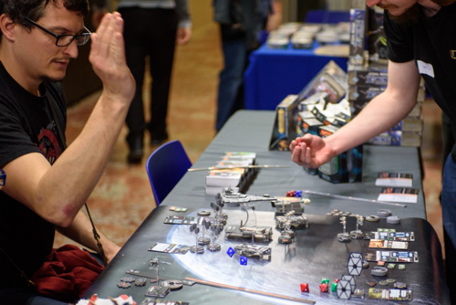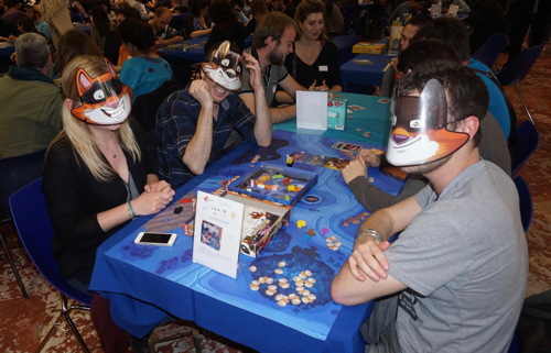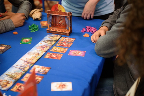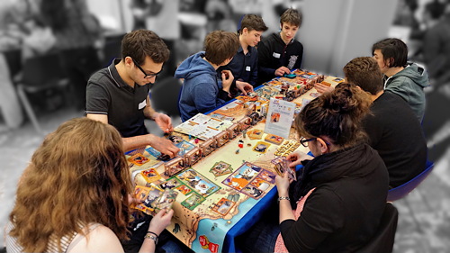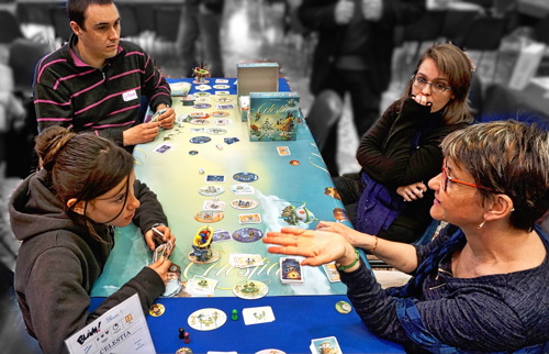 Enfin, nous voulions associer les éditeurs à notre projet. Après avoir rédigé un texte présentant le projet et ses ambitions pour les années à venir, nous leur avons proposé de s’associer et de nous accompagner dans cette démarche. Plusieurs nous ont suivi en nous soutenant particulièrement, confirmant ainsi ce que nous pensions du potentiel sur Montpellier. On peut ainsi citer les Ludonautes qui ont été les premiers à nous faire confiance et se sont déplacés lors de la soirée d’ouverture. Mais aussi Morning Player et Superlude présents lors des soirées et le week-end. Alain de Blue Cocker est également venu de Toulouse, en voisin, animer les tables de ses jeux le samedi. Repos Prod et Asmodee avaient quant à eux envoyé une équipe d’animateur et pas mal de matériel.