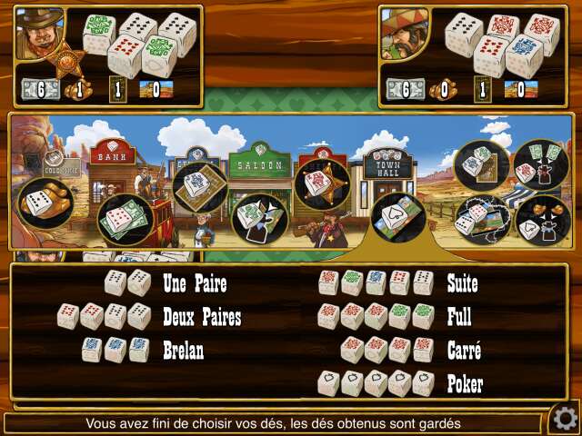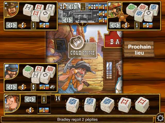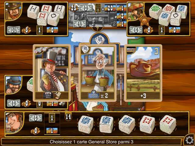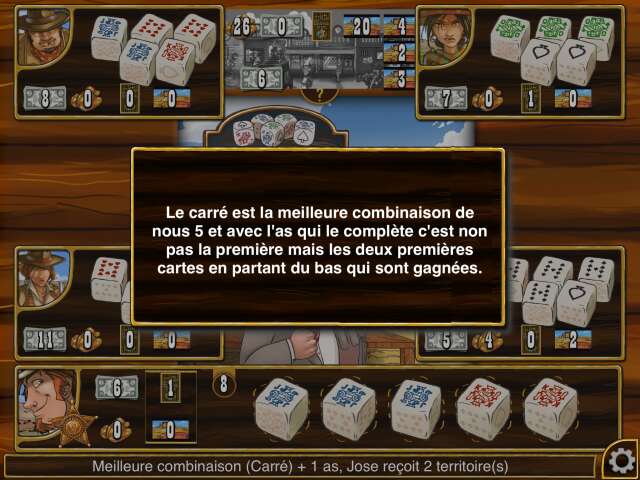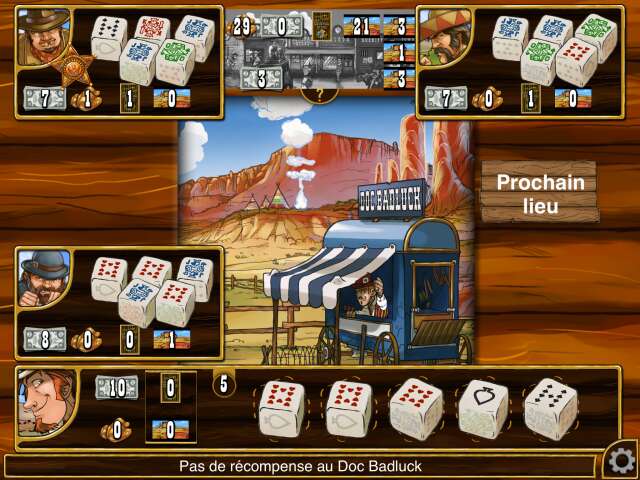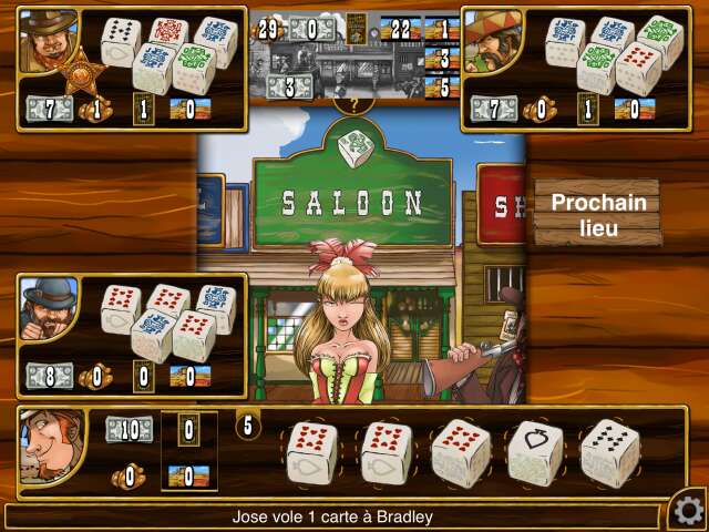 Mais que donne tout cela dématérialisé dans notre chère (dans tous les sens du terme) tablette ? Jouer avec des dés lancés par la machine est-il aussi jouissif qu’avec des vrais ? Les dames du saloon sont-elles aussi gentilles qu’en vrai ?… Heuu je ne suis pas certain que les dames soient fournies avec la boite de jeu en fait…
