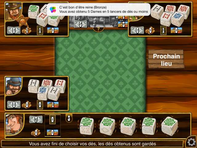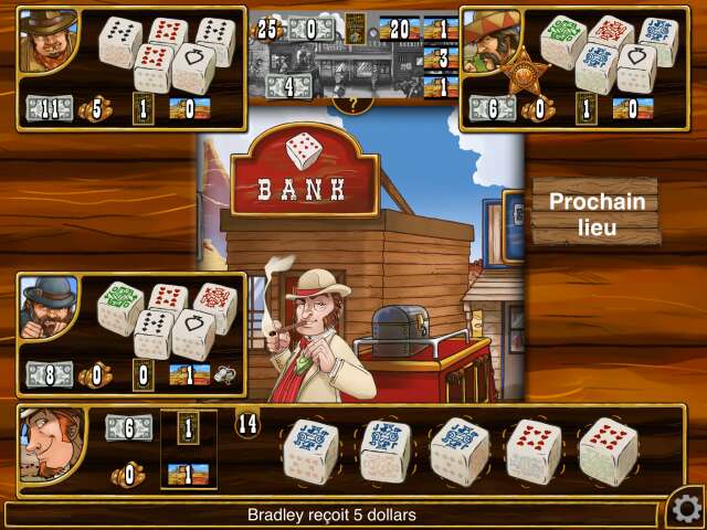 Mais me rétorquerez-vous, pourquoi se chagriner du fait qu’il n’y ait aucun son dans cette application alors que jamais cela ne te plait dans les autres ? Tout simplement parce que les autres ont au moins essayé de faire quelque chose. Ici le vide total d’ambiance sonore est tout de même gênant, d’autant plus si vous avez déjà joué à la version réelle du jeu ou c’est souvent un joyeux bazar autours de la table entre les dés lancés, les discussions, les râlaaages après des coups de pu… dame du saloon… Bref c’est assez perturbant.
