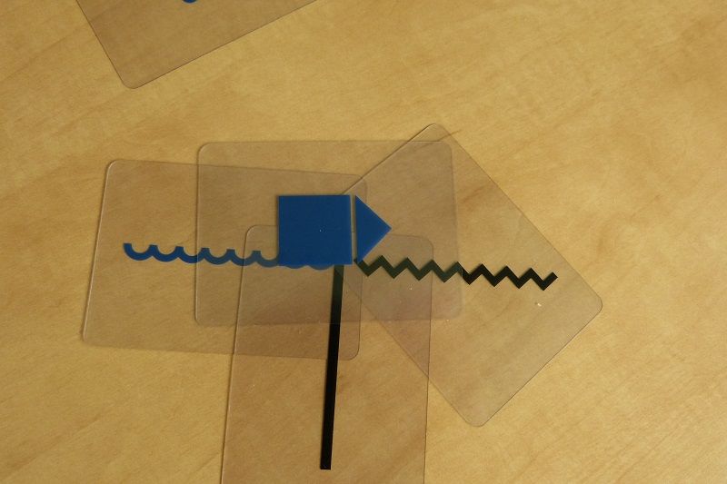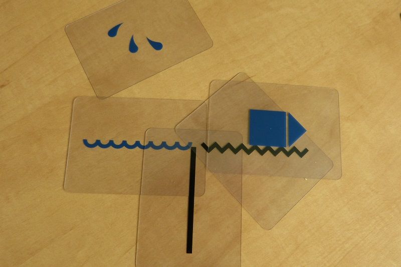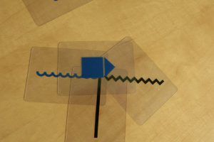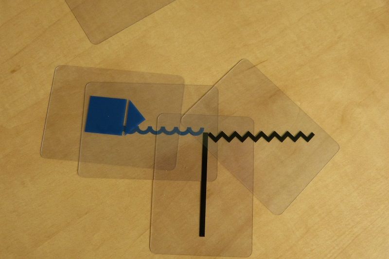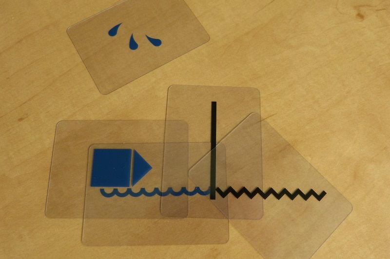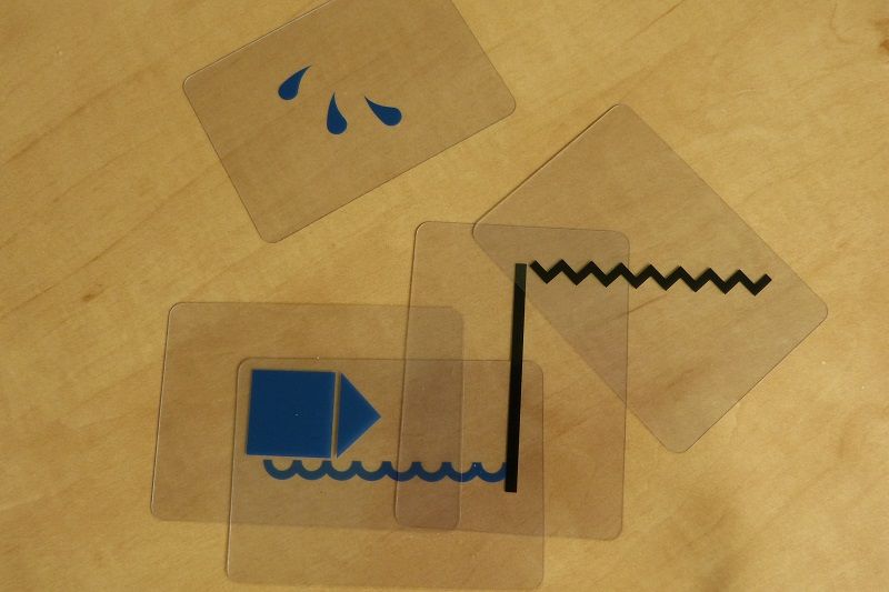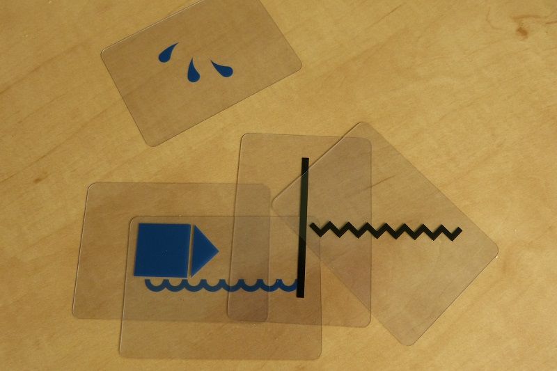 Vous prenez autant de cartes transparentes (celles avec des symboles) que vous le souhaitez et vous les disposez sur la table de manière à faire deviner aux autres joueurs votre mot. Voilà, c’est tout !