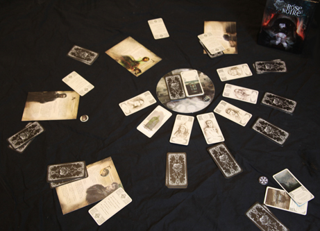 La Rose Noire est un jeu d’enquête à rôles cachés signé Sebastian Chedal édité par Agate et distribué chez Iello qui se situe dans l’univers des Ombres d’Esteren (le jeu de rôle).