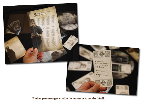 Notez qu’on peut y jouer sans connaître le monde d’Esteren, mais si vous êtes rôliste, vous savourerez les cartes personnages qui ajoutent un peu à l’ambiance – bien qu’elles ne soient d’aucune autre utilité, le souci du détail est louable.