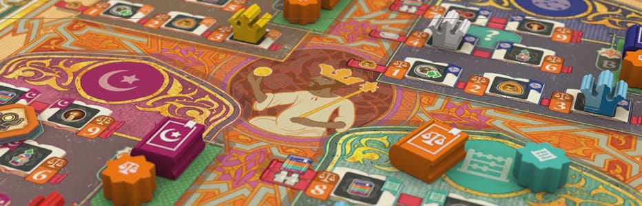 Quand vous érigez un des murs de la Medersa vous gagnez les ressources présentes en or, mais vous retournez la tuile Sankoré sur son côté point de prestige, non sans gagner le bonus avant. À la fin de la partie, toutes ces tuiles point de prestige vont être attribuées au joueur majoritaire dans les lignes et colonnes, et là encore l’interaction va être féroce.