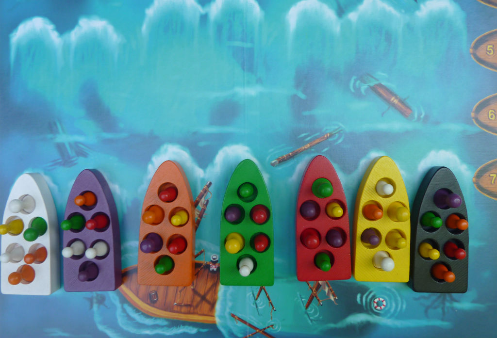 Vous avez compris, les bateaux se remplissent de trous, chaque tour il y a une élimination, et quand un bateau a plus de trous dans sa coque que de pions… bloub bloub bloub… Il coule …