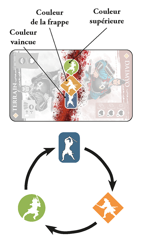 Sébastien : Le jeu se déroule en trois phases. Si à un moment, l’écart entre l’honneur des participants est d’au moins 6, le plus faible a perdu.