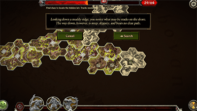 Précisions de suite qu’il existe deux types de scénarios : des scénarios plutôt d’exploration où vous allez courir la campagne, et des scénarios plutôt d’affrontements, qui auront lieu sur une zone géographique plus petite, pour simuler plutôt des escarmouches avec un groupe d’ennemis. Néanmoins, dans les deux cas, les règles sont les mêmes. Précision importante : j’ai joué un scénario de chaque type, et ne suis pour le moment pas encore allé plus loin.