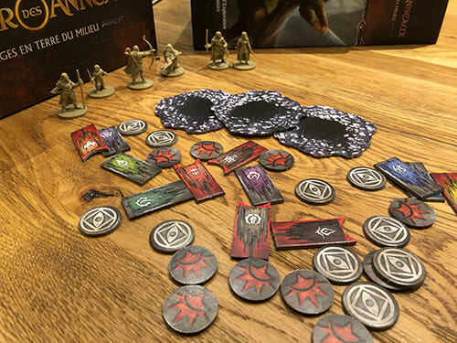 Donc, le Seigneur des Anneaux : Voyages en Terre du Milieu (Nathan I. Hajek, Grace Holdinghaus) est un coopératif qui, comme son nom l’indique se passe dans l’univers de Star Wars. Ah non, pardon. Il faut dire que décliner des licences, c’est un peu la marque de fabrique de FFG, mais on y reviendra (oui ça fait deux cliffhangers, habituez-vous, c’est ainsi). Bon, donc vous incarnerez des personnages iconiques (ou inventés) de l’œuvre de Tolkien. Ceux-ci vont vivre des aventures, à travers des scénarios, eux-mêmes organisés en campagne.