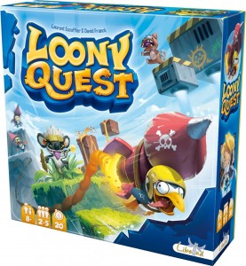 Dans Loony Quest, on trace son trajet sur une planche transparente. Pourquoi le faire, me direz-vous ? Eh bien, car après on la place sur sur la tuile centrale, et on vérifie si notre tracé est bon ou pas : on trouvera des points à atteindre et des obstacles mais on a un temps limité pour remplir notre mission et celui qui y arrive le mieux, en chipant les petits bonus au passage, marquera le plus de points.
