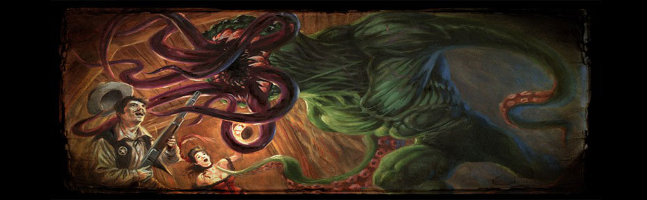 Le jeu d’exploration, c’est d’habitude du porte-monstre-trésor bien physique tandis que Cthulhu c’est plutôt psychologique, psychique, relationnel. Et puis le western dans tout ça, n’est-ce pas risible de mettre des monstres tentaculaires en plein Far-West ? Cette alchimie n’avait rien pour séduire, non ? Et pourtant, étonnement… si.