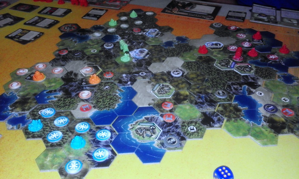 Il ne faut pourtant pas voir cet épisode comme un produit « light » ou sorti uniquement pour relancer la licence. Ce jeu ne se retrouvera pas sur les rayonnages des supermarchés, ni sur les tables des joueurs trop casual. Il faut s’accrocher un minimum pour s’y coller : un mauvais placement de départ (entouré de lacs et une seule issue pour se déplacer) vous fera perdre quelques tours. Il faudra garder les yeux partout, anticiper le terrain, surveiller qui est proche de la victoire, et surtout bien gérer son échelle de priorité. Jongler avec cartes et terrains est à la fois frustrant et si plaisant. On trépigne, on souffle, on jubile. Il faudra aussi s’adapter en fonction des adversaires qui se rapprochent, il y a toujours un moment où il faudra se battre ! Le jeu est riche de détails qu’on aura tendance à oublier lors d’une première partie et qui ont leur importance (pouvoir des villes majeures, gain si victoire sur les barbares…)
