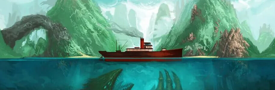 Ryan Laukat : un homme-orchestre, à n’en point douter. Illustrateur dès Dominion, mais aussi auteur et éditeur, ce petit bonhomme de l’Ohio a assis son succès par des univers chamarrés et plutôt oniriques, parés d’un charme frais et adolescent. Sleeping Gods s’échappe de l’univers d’Arzium qui servait alors de creuset à la plupart de ses créations (Above & Below, Islebound, Near and Far, Roam/Périple) mais reste fantasque. L’équipage du Manticore, un chalut tout mignon, se retrouve transporté dans un autre monde dont on ne pourra sortir qu’en accumulant les totems qui réveilleront les dieux, seuls capables d’extraire Sofi Odessa et ses sous-fifres de ce monde aux codes si différents. Les tropes de l’isekai sont bien là : autre monde, autres repères, autres coutumes auxquelles on compare les siennes…