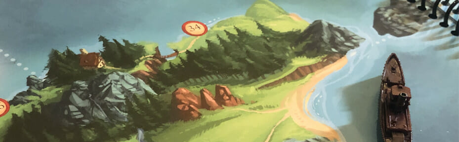 Si vous connaissez déjà le travail de Laukat, vous savez probablement que l’auteur-illustrateur-éditeur-musicien avait déjà deux belles itérations dans le registre du jeu narratif basé sur un système Euro, avec Above and Below pour la famille un peu joueuse, et Near and Far pour les plus aguerris. Dans ces deux tomes, une sincère volonté d’allier narratif et gestion, avec soulignons-le derechef, la belle idée innovante et forte symboliquement du livret-plateau de Near and Far, maintes fois reprises depuis par d’autres créateurs.