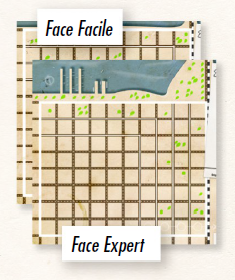 Chaque joueur possède son petit plateau personnel (vous choisissez le côté sur lequel vous préférez jouer : facile/expert) il s’agit d’une grille avec 100 ou 80 carrés : votre arrondissement. C’est là que vous construirez vos tuiles bâtiments.