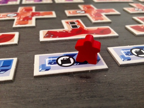 On va débuter le tour en plaçant notre meeple Maire (très bien coiffé) sur une rue du plateau du 1er joueur, bloquant ainsi à la construction les deux carrés adjacents pour ce tour. Ha, ça commence bien !