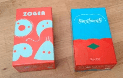 Quand on voit cet OLNI on se dit que tout est possible, tout peut devenir un jeu. TomaTomato ou Tomatomato (à l’envers) contient quatre types de carte « Tomato, Mato, Ma, To » avec illustrations épurées comme le veut la ligne directrice de l’éditeur. Vous lancez ce gros dé rouge et posez autant de cartes que la valeur indiquée. Puis avec un rythme soutenu, sans pause, lisez la phrase. « Matotomatomatomamamatototomato ». Si vous ne vous êtes pas trompé, c’est au tour de votre voisin. Attention, des cartes vous font lire la phrase à l’envers. Tiens, une « potato » juste là pour vous embrouiller.