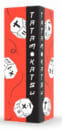 Compartiment qui se glisse dans une boite qui elle-même se glisse dans un couvercle, le secret des dés de combat est bien gardé. Tata moquette, ce n’est au final que trois dés à 8 faces avec des symboles remplaçant les valeurs 1 – 6. On ajoute un truc ou deux un peu plus tordus : x-1, la face vaut 1 ou 10, et T : il faut attraper le dé et crier Tata… Yoyo !