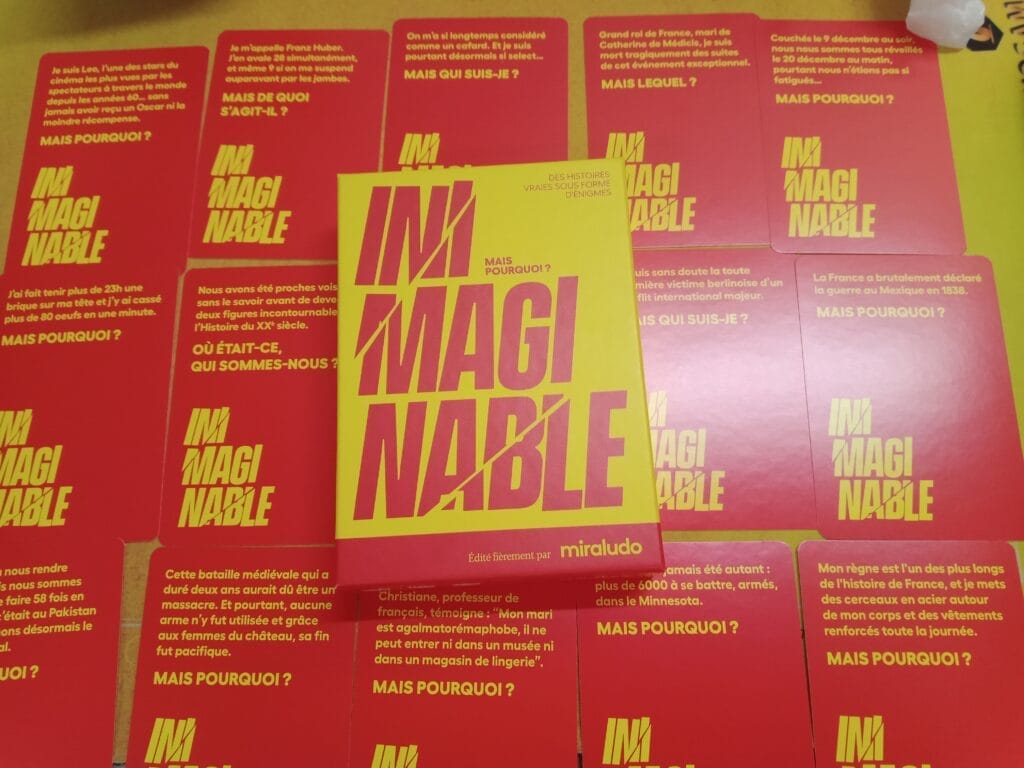 Avec son visuel à la bouillon Kub or, Inimaginable ne va pourtant pas nous servir la soupe. Voilà un jeu d’énigme dans la droite lignée des Black Stories. Quelques lignes et un pourquoi à trouver ?