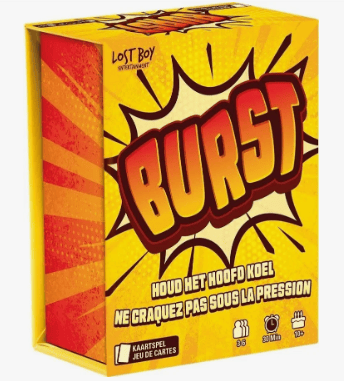 Burst est un jeu de cartes avec une base de Black Jack. À son tour on pioche une carte ou on en pose une (obligatoire si on en a 3 en main). On pose sur une rangée que l’on crée peu à peu, la somme des valeurs ne doit pas dépasser 21. Certains effets peuvent éliminer des cartes en place, certaines valeurs se soustraient. Quand quelqu’un explose (il dépasse 21), les autres comptabilisent leurs cartes en main. On est tenté de conserver les grosses valeurs (11, 10,15…), mais elles empêchent aussi de jouer et compter sur le hasard pour piocher la bonne carte est risqué. Si l’on joue à 3, le tirage des cartes est trop impactant. À 6 on peut effectivement prendre le risque de stocker une grosse valeur en espérant que ça capote avant de revenir à vous, mais la partie est alors un peu trop longue (100 points à atteindre).