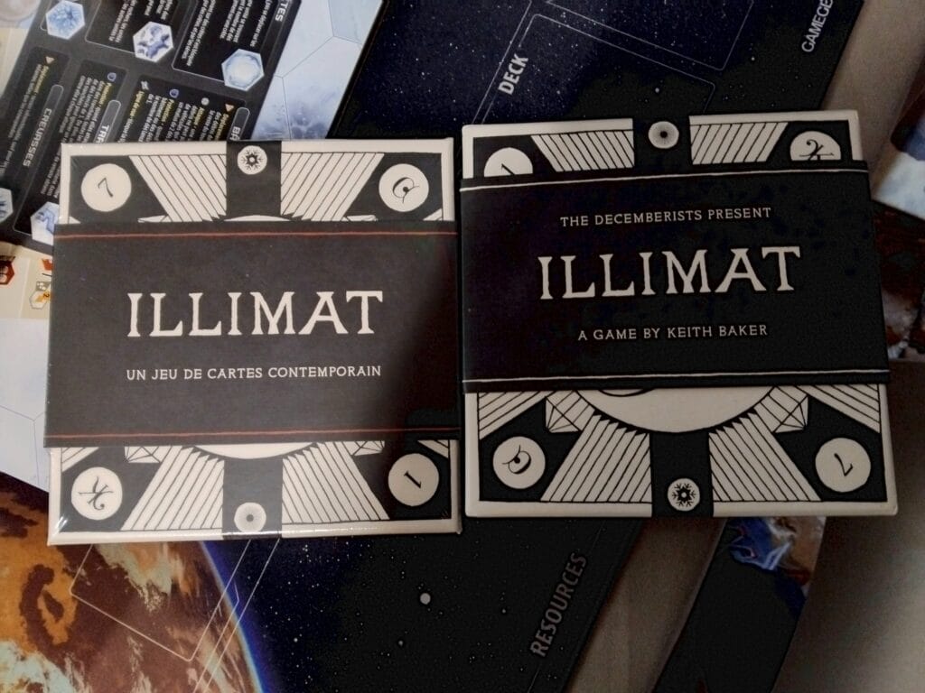 En 2026, où en est-on ? J’avoue que d’y avoir beaucoup joué a émoussé le plaisir et je trouve que la chance du tirage, la pose de valeurs a une place plus importante que je l’avais ressenti au départ. Illimat, j’y vais maintenant avec moins d’entrain, mais pour les mains innocentes qui vont découvrir ce titre, voilà un plaisir accessible et dynamique. Surtout que la VF propose les extensions dont nous avons été privés à l’époque au vu de leur prix : Les arcanes de la femme cigogne, les arcanes du faux baron.