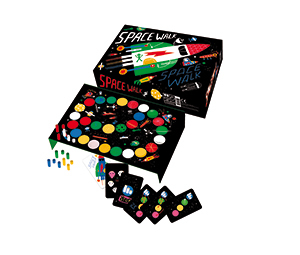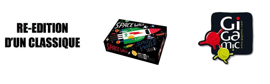 Gigamic vous propose de redécouvrir ce petit titre malin qu'est Space Walk (de Rüdiger Dorn, première parution en 99 chez Ravensburger) : il s’agit d’un petit jeu inspiré de l'awélé qui s’adresse à l’astronaute qui ronfle grassement en vous et qui attend pourtant son voyage inter-galactique avec une impatience non feinte (mais il n’y croit plus, c’est tout). C’est l’occasion de le secouer car là, on va décoller. Avec 1 à 4 autres astronautes – consentants, si possible.