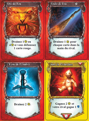 - Activer une carte du dessus qui vous fait face (faîtes ce que le texte sur la carte dit et commencez pas à être inventif non plus). Dès que vous avez réalisé vos deux actions, c’est à votre rival de jouer. La partie continue ainsi, jusqu’à ce qu’un des deux magiciens l’emporte.