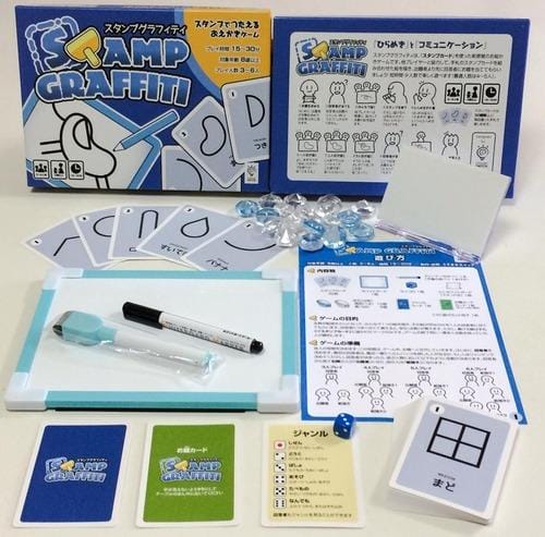 2. On va dessiner, Germaine !Le premier joueur joue son tour et dessine en premier. Il pose une carte tampon, venant de sa main, face visible devant lui. Tout en respectant les règles explicitées ci-après, il doit reproduire ce dessin-là comme un tampon le ferait sur le tableau. Les autres cartes en main ne sont pas jouées.