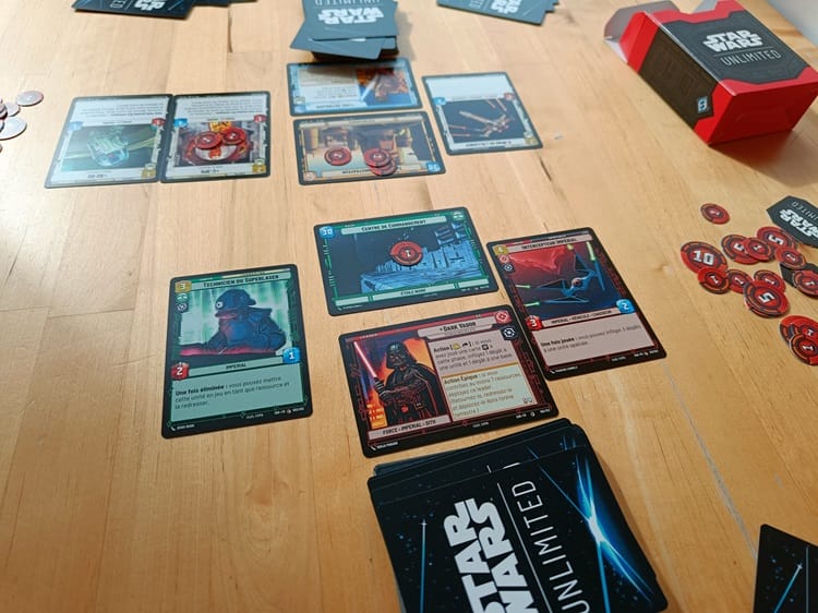 Si jamais on devait jauger Star Wars Unlimited sur le plan de l’innovation pure, on est un peu au ras du plancher. Mais l’ensemble des décisions orientant le gameplay cherche assez précisément à résoudre des problèmes récurrents de jeux de cartes à collectionner… et à créer un bon produit (on le verra plus tard).