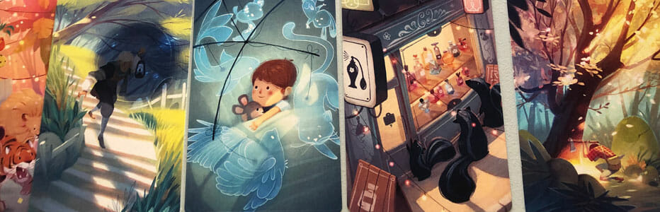 Atom : Les images sont la porte d’entrée du jeu, à l’instar de toute la gamme Dixit. Elles se doivent donc d’être irréprochables, et riches. Artistiquement parlant, difficile de trouver à redire pour ma part aux mirifiques illustrations de Jérôme Pelissier, déjà à l’œuvre sur Dixit Memories. En conviens-tu ?