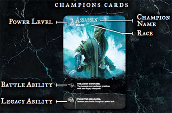 3/ Héritage : kezako ? Vous vous souvenez, chaque joueur a une pile à sa droite, ce sont les cartes Legacy (héritage). Durant cette phase, vous allez vous servir de la carte Champion qui est en haut de cette pile (on procède de la même façon que précédemment pour savoir qui joue en premier).