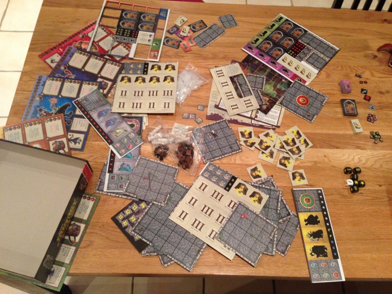 On pourra recouvrir ce matériel par des jetons trésors découverts dans les coffres du donjon.