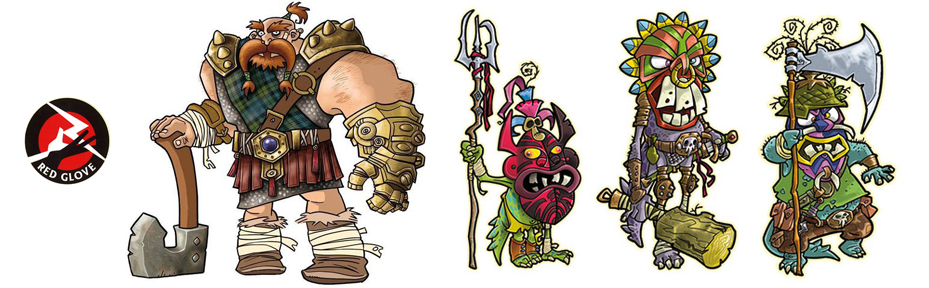 – Au niveau des figurines de monstres et de héros on a des cartons qui vont se clipper sur des supports en plastique. Les dessins sont très sympas dans un style loufoque délirant et on reste sur la même qualité que les grandes tuiles et jetons et c'est très appréciable à nouveau.