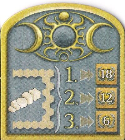 En jaune, les Nomades ont généralement l’économie assez solide pour naviguer, et la capacité à prendre des positions plus étirées via leurs 3 Dwellings initiaux. Fait notables, ce décompte peut également encourager une présence Fakirs : une fois la portée de leur Tapis améliorée, ils n’auront pas trop de mal à survoler les positions. Enfin, c’est le meilleur scoring additionnel pour des Géants qui aiment à naviguer et peuvent tracer leur sillon sans s’embarasser des couleurs rencontrées sur leur passage.