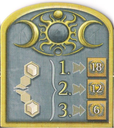 Ce scoring chamboule largement les enjeux de placement initiaux. Malgré son intérêt évidemment rehaussé dans cette configuration, une position en bord de carte n’en reste pas moins problématique : soit vous y serez tout seul (avec les inconvénients qu’un tel isolement comporte), soit les voisins vous disputeront les avant-postes sur place et/ou menaceront de vous enfermer le long de la bordure.