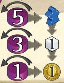 | Coin Pièce | Worker Ouvrier | Priest Prêtre | Power Pouvoir | Victory Point PV | Dwelling Habitation | Trading Post Comptoir | Temple Temple | Stronghold Forteresse | Sanctuary Sanctuaire | |||||||||