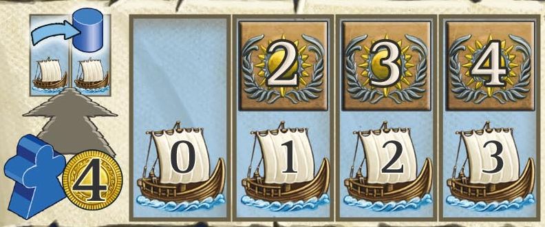 Hormis quelques cas particuliers où un gros bénéfice d’expansion est attendu, l’amélioration du niveau de navigation est à retarder au maximum dans la partie. Il faut avoir conscience que 4C immobilisées, en particulier lors des trois premières manches, vont manquer à votre développement par ailleurs. De plus, le prêtre dépensé va sans doute vous priver d’un bonus de culte. Lorsque c’est possible, préférez l’utilisation de BON4 en début de partie : vous aurez davantage de moyens pour connecter votre réseau lors des dernières manches.