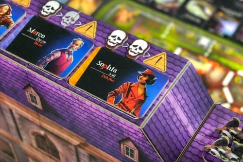 Les actions du tueur sont gérées par son deck (avec plusieurs tueurs/decks différents dans la boîte pour plus de rejouabilité). À chaque fois que la pioche s’épuise, les cartes sont mélangées pour créer un nouveau deck, permettant au tueur de monter en niveau et de gagner de nouvelles capacités, avantages et pouvoirs. Le tueur ne sait pas où sont les survivants, il tente de le déduire via ses actions et en obtenant des indices sonores de la part de ses adversaires. Et oui, les survivants essaient d’être discrets mais certaines actions sont un peu bruyantes…
