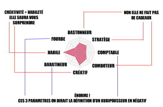Mais au-delà de ça, on a un profil relativement équilibré malgré un manque flagrant de baratinage et de fourberie.