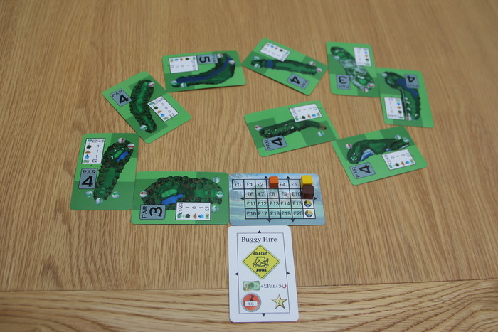 Déjà, il ne doit pas y en avoir beaucoup dans le monde des jeux de société, mais ici, il s’agit plus précisément d’un jeu où on construit son parcours de 9 trous, avec gestion tendue de ressources et une composante spatiale (pas les vaisseaux hein !) en prime.