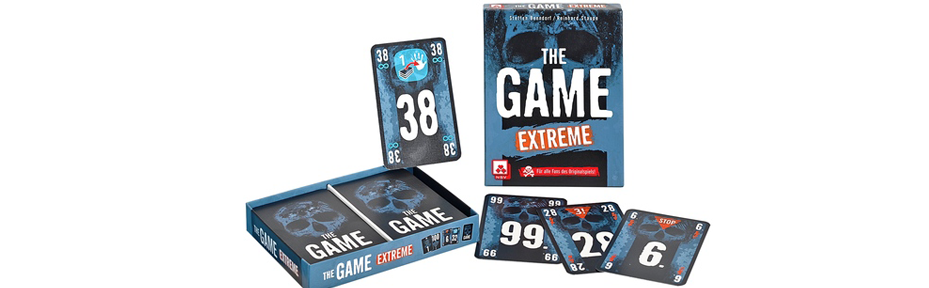 Et bien, figurez-vous que l’auteur, Steffen Benndorf, s’est dit que c’était un peu trop facile tout ça. Du coup il est allé chercher Reinhard Staupe (que vous connaissez peut-être pour être l’auteur de Havanna ou Qwixx) et ils ont conçu ensemble la version dites « extrême » de The Game… Côté illustrations, on prend les mêmes et on recommence, avec une teinte bleue pour pas se mélanger les pinceaux. Soit.