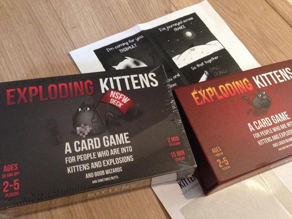 Hier encore en traînant sur Facebook je voyais des gens qui n’avaient pas de vraies vacances se rassurer en se disant que parfois, les plus chanceux sont ceux qui ne partent pas. Et bien je me dis la même chose. Moi je vais bien – je ne suis pas jetlaguée. J’ai pas perdu la moitié de ma santé mentale en me faisant bénir par Cthulhu. En plus, trop de la boulette, j’ai reçu Exploding kittens. Wouhou.
