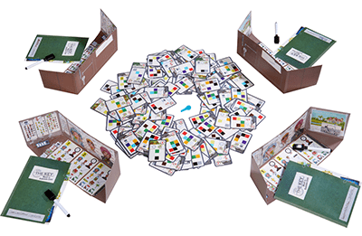 Je n’ai joué qu’à la boite de niveau moyen, Meurtres au golfe d’Oakdale, l’autre boîte n’étant pas disponible encore en France, suite à des soucis sur certaines cartes. Il va falloir encore attendre quelques semaines pour un retirage. Le jeu est donné à partir de 8 ans, c’est un peu court quand même car la pression est forte pour les enfants. Dans ce niveau moyen, il y a 4 éléments à déduire contre 3 dans Vols à la Villa CliffRock. Le troisième opus qui sortira en fin d’année sera de niveau moyen aussi.