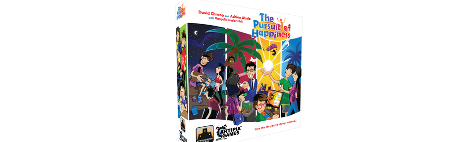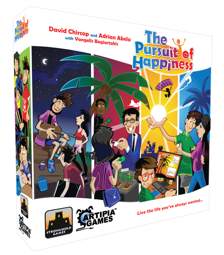 The Pursuit of Happiness est un jeu dans lequel vous prenez un personnage dès sa naissance et vous vivez la vie vous avez toujours voulu. En utilisant un mécanisme de placement d’ouvriers, vous partez sur des projets, vous trouvez des emplois, vous achetez des choses, vous établissez des relations, vous fonder une famille. Les possibilités sont infinies.