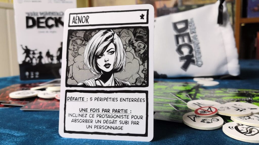 Dans « The Walking Deck » votre personnage devra faire des choix face à des péripéties qu’il va rencontrer. Vous piochez d’abord 3 cartes péripéties, pour ensuite en jouer jusqu’à en garder plutôt qu’une (ou plus du tout) en main.