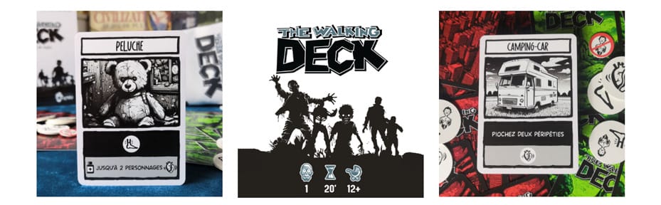 Dans « The Walking Deck » votre personnage devra faire des choix face à des péripéties qu’il va rencontrer. Vous piochez d’abord 3 cartes péripéties, pour ensuite en jouer jusqu’à en garder plutôt qu’une (ou plus du tout) en main.