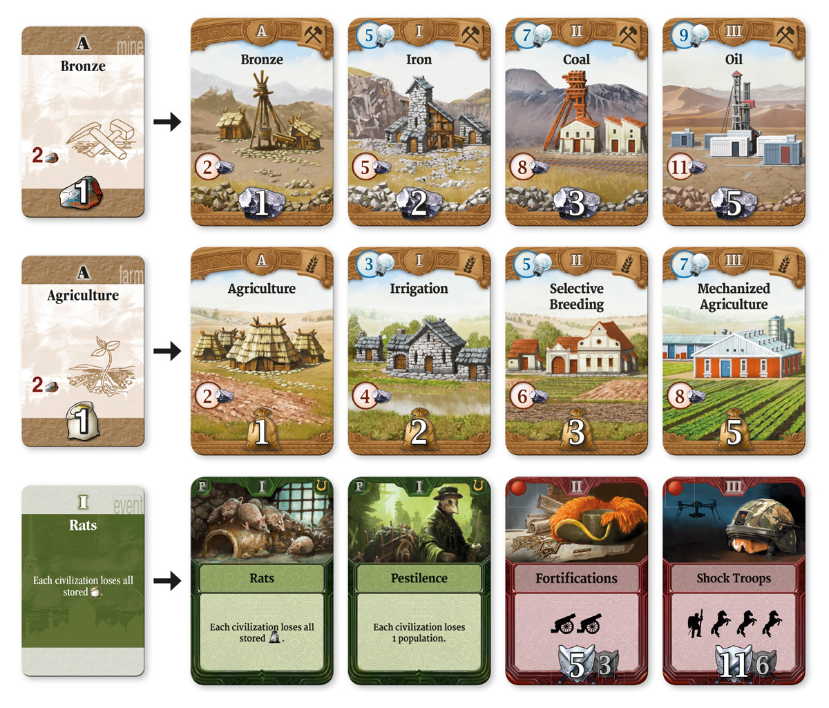 Through The Ages, c’est un gros morceau. Une réputation à tenir. Czech avaient décidé de le transposer en version Ios pour qu’on puisse développer nos civilisations du bout du doigt. Bien leur en a pris. En faisant ce travail-là, ils se sont dit : « Et les gars, finalement, si on en profitait pour améliorer un peu le jeu ? Vous vous souvenez des nombreux retours des joueurs ? Si on réglait quelques situations problématiques ? Et puis tiens, finalement, si on re-sortait le jeu de plateau avec toutes ces améliorations ? Ouais ! Tournée de burritos les mecs ! ».