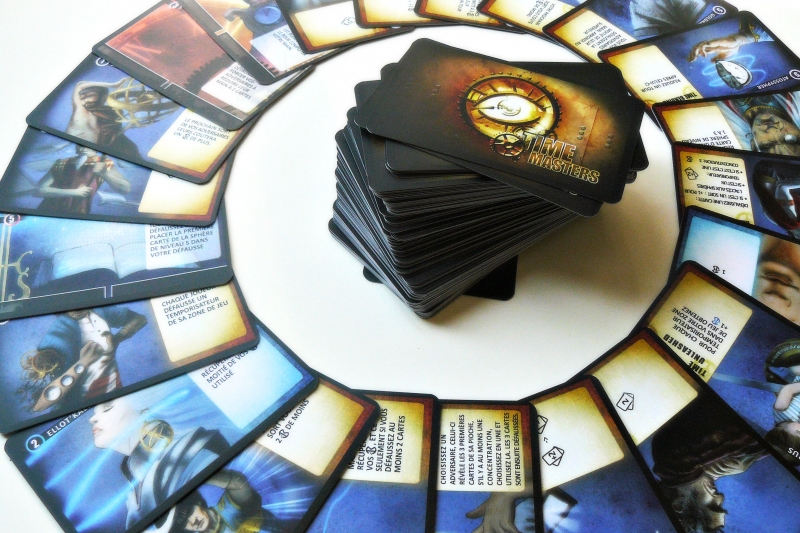 "Time Masters est un jeu de carte faisant partie de la famille des “deck building”, ce qui signifie que les joueurs vont construire leur deck, leur pioche, au fur et à mesure de la partie. Dans celui-ci, chaque joueur devra lancer des sorts en dépensant des Ke’s.
