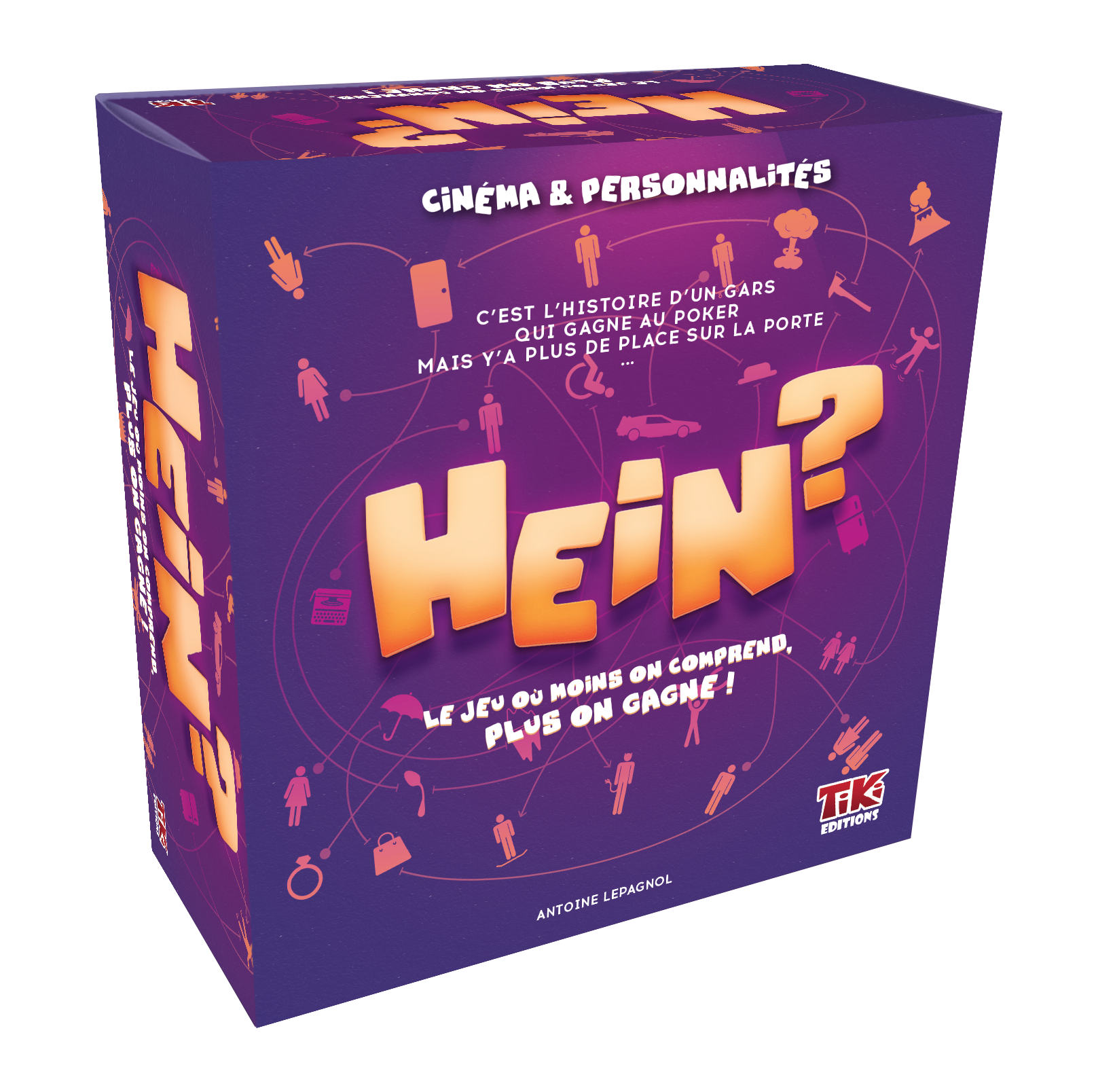 - Hein ? (Tiki Editions) jeu d’ambiance où vous essayez de décrire des films ou des personnalités de façon étrange et amusante.